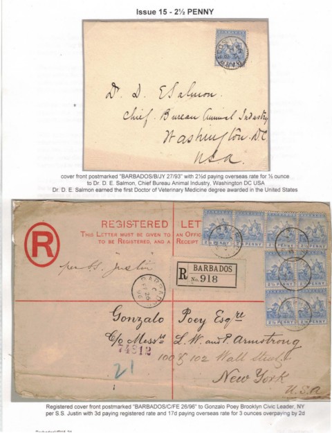 per S.S. Justin with 3d paying registered rate and 17d paying overseas rate for 3 ounces overpa mg oy 2d